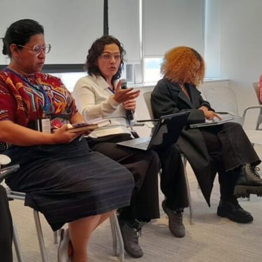 Las presentadoras del evento fueron Milena Paramo de CLADEM, Tarcila Rivera de ECMIA y Gilma Viera de la Red de Mujeres Afrolatinoamericanas, Afrocaribeñas y de la Diáspora y Fernanda Vazquez de RedLAC.